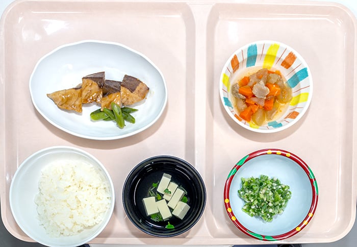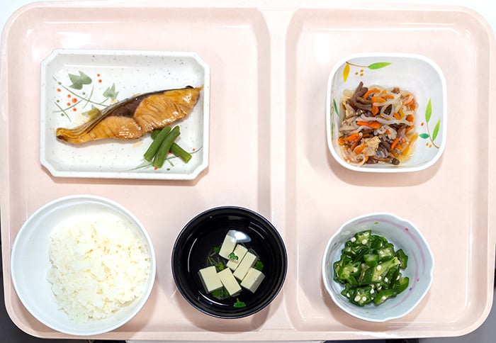 治療食をはじめ、季節を取り入れた行事食や月1回の選択メニューなど食事を楽しんでいただける工夫を行っています。(委託会社と日々意見交換を行い、新メニューをとりいれています)