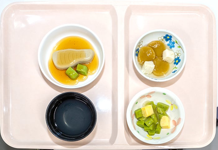 食事形態については、嚥下困難な方に対応した嚥下調整食(ペースト食・ソフト食)や、噛む力が低下された方でも美味しく食べられる軟菜食等もご用意しています。