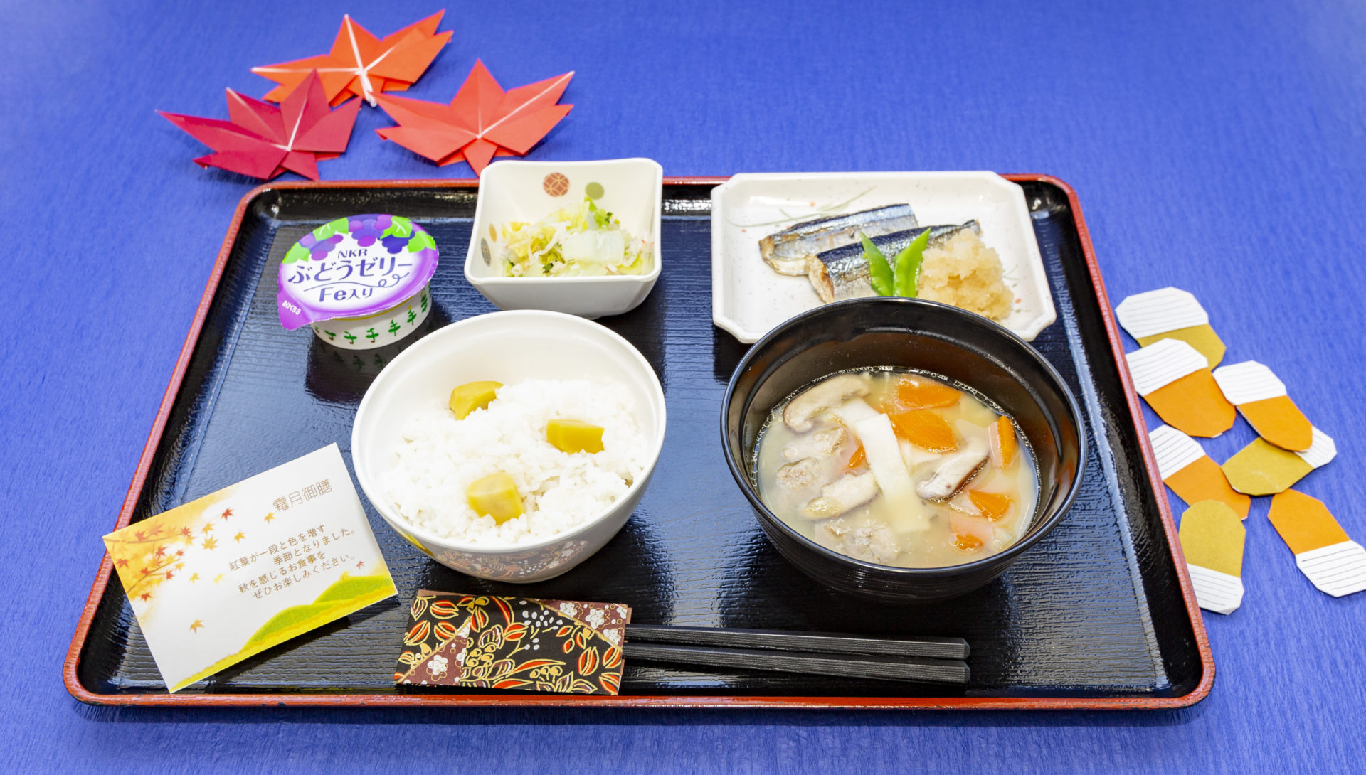 11月21日に「霜月御膳」として、秋が旬である栗ご飯や秋刀魚の塩焼きを提供しました。