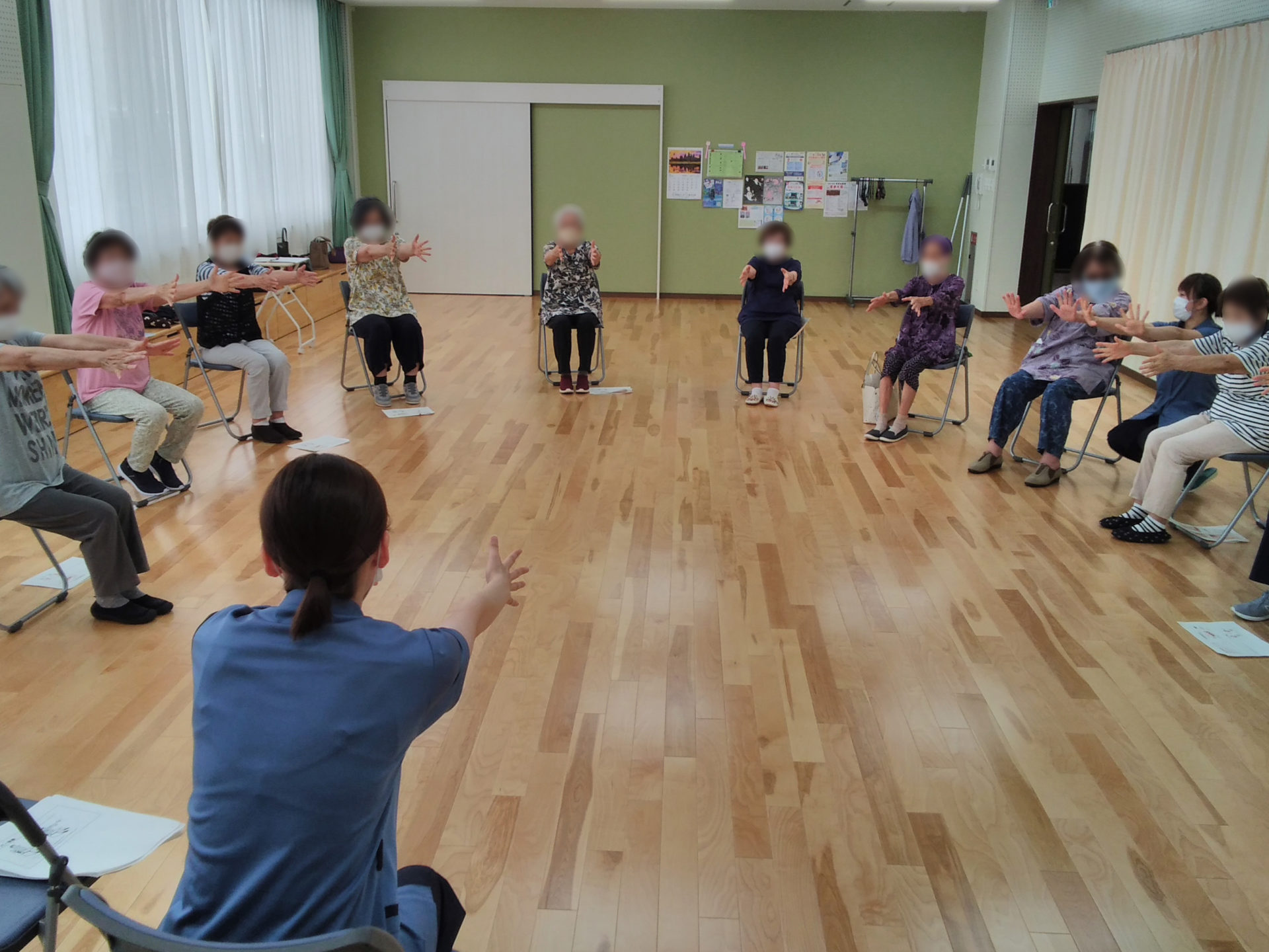 運動教室では夏に向けての体づくりにつながるストレッチを実施しました。