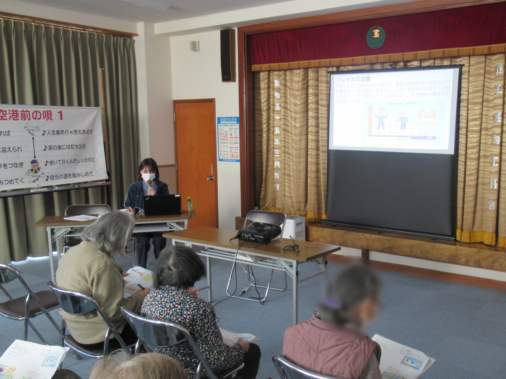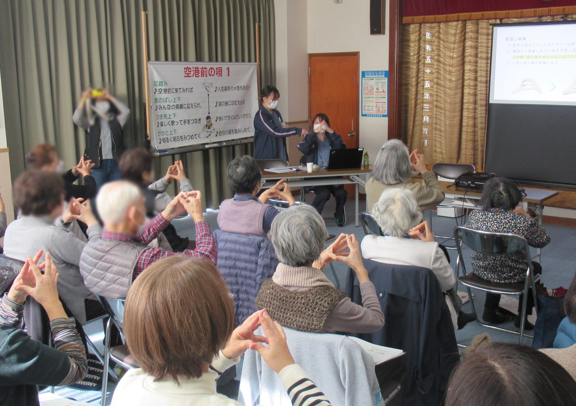 今回はフレイル予防に効果的な『コグニサイズ』についても説明を行い、実際に身体を動かしながら頭の体操を行う運動を実施しました。